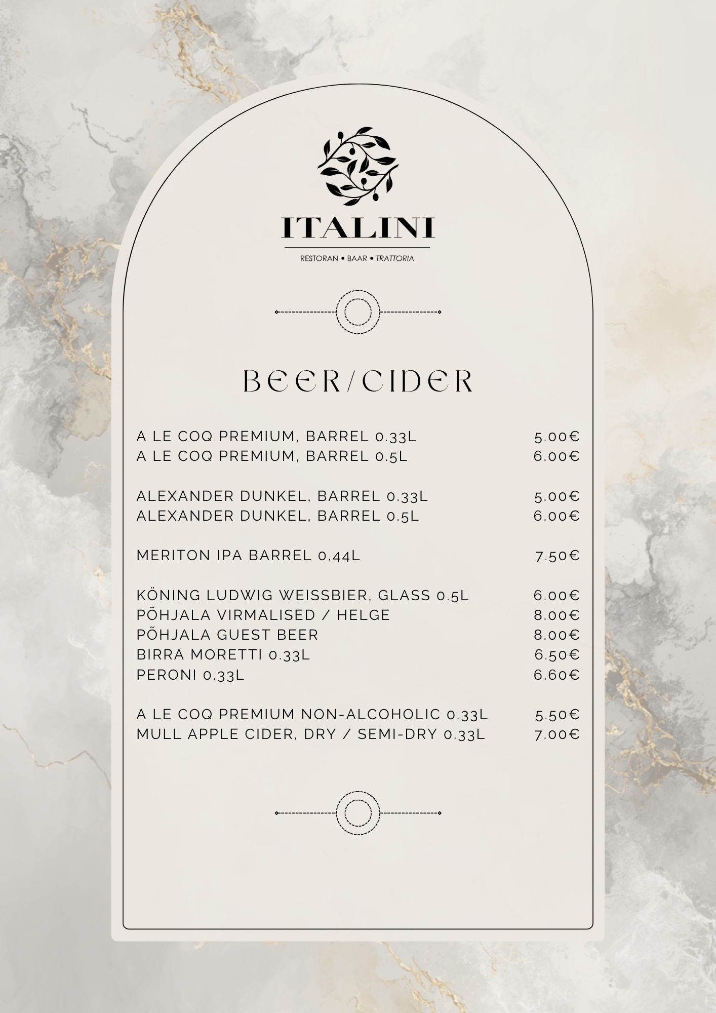 At ITALINI, we invite you to escape to Italy with every visit, experiencing the warmth and richness of Italian dining without ever leaving Tallinn. Join us for an unforgettable culinary journey. Buon Appetito!