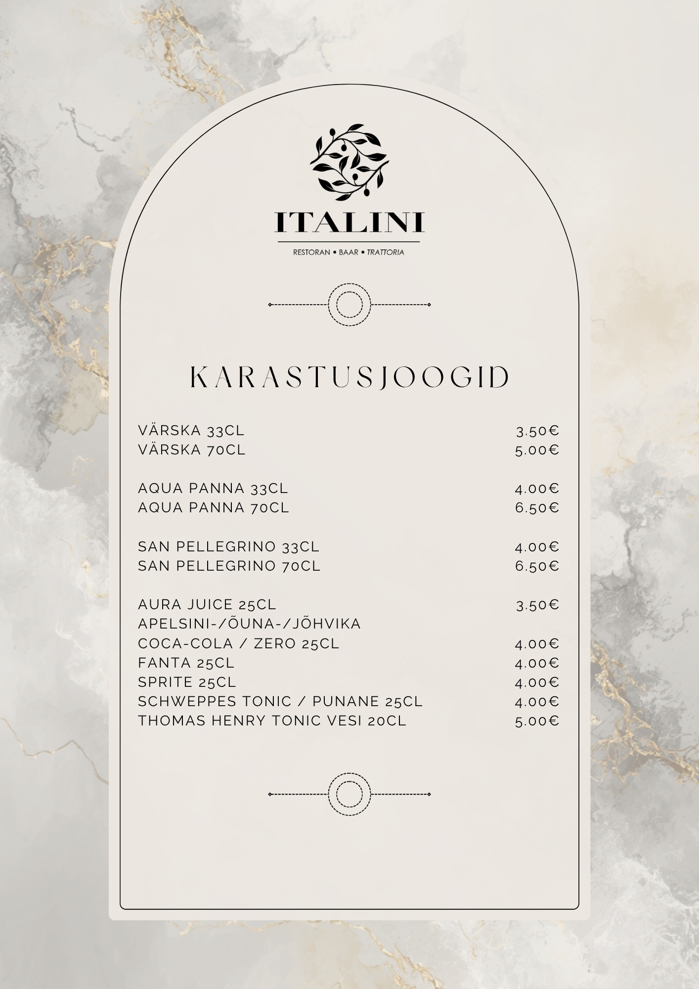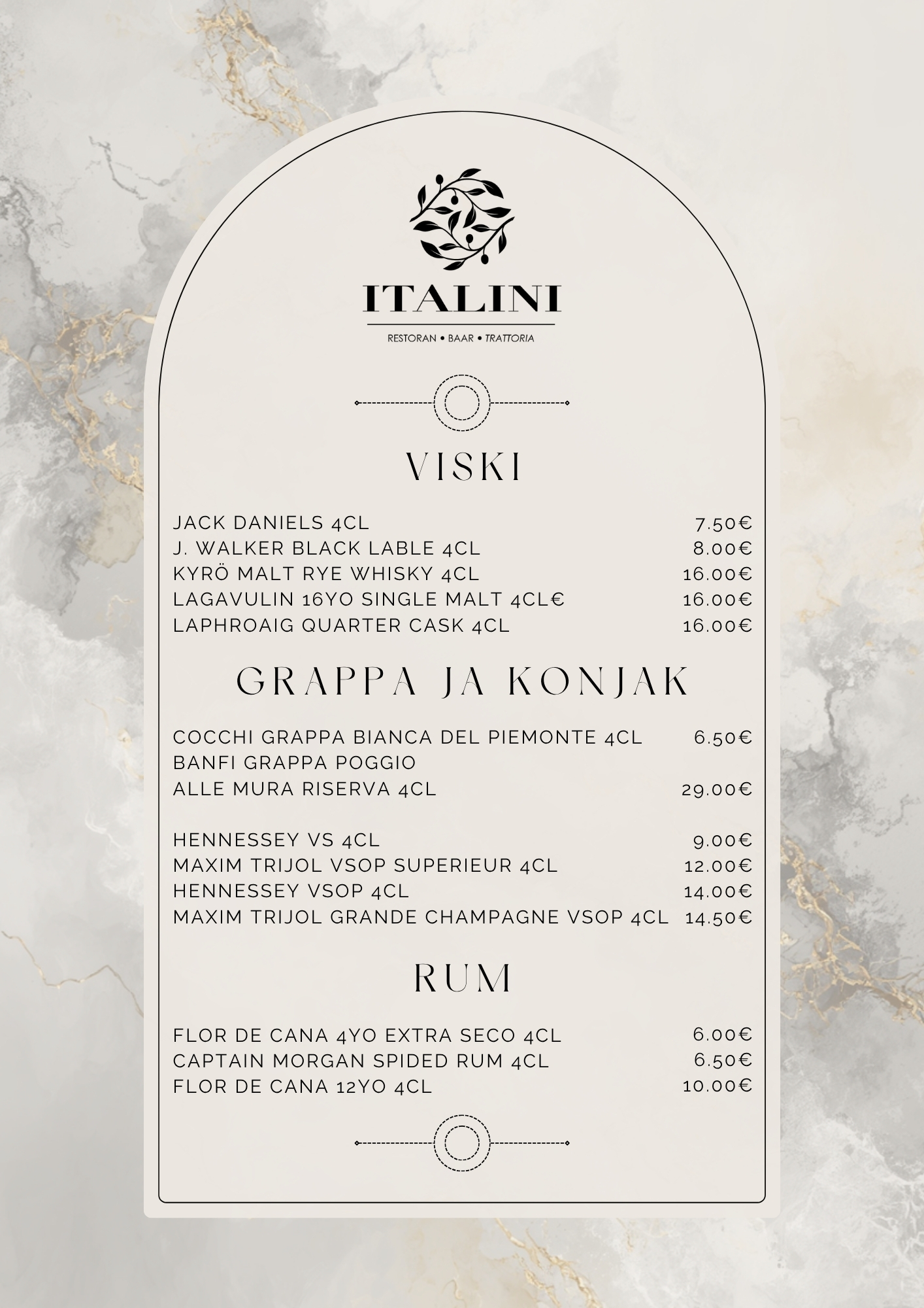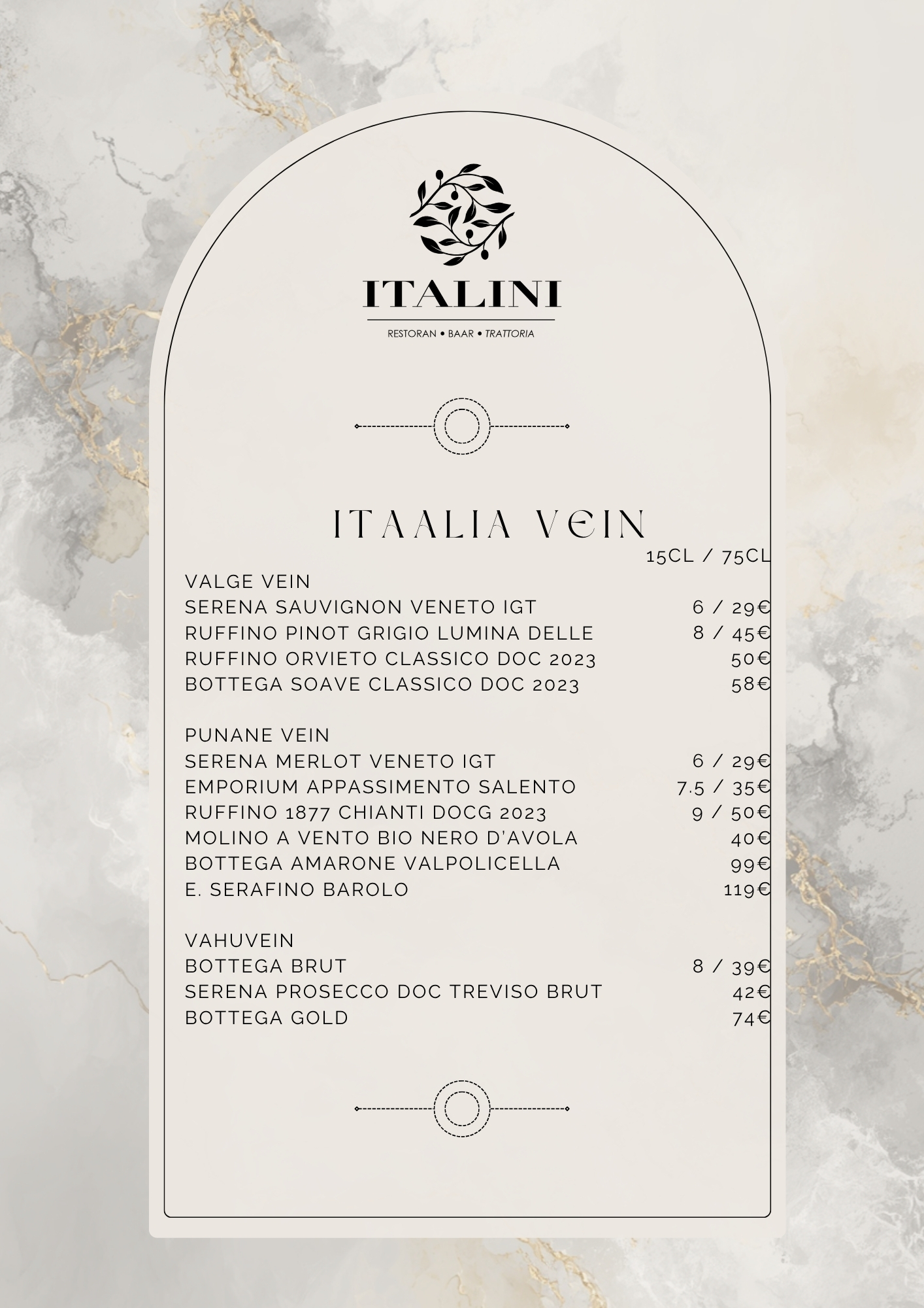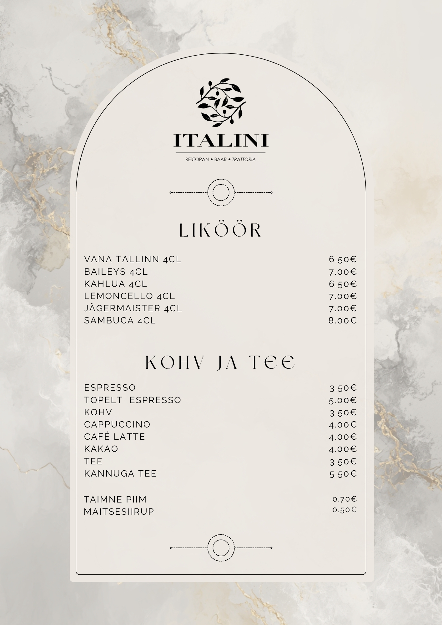 ITALINI kutsub teid iga külastusega Itaaliasse, pakkudes võimalust kogeda Itaalia söögikultuuri soojust ja külluslikkust ilma Tallinnast lahkumata. Ootame teid meiega liituma unustamatule kulinaarsele teekonnale. Head isu!