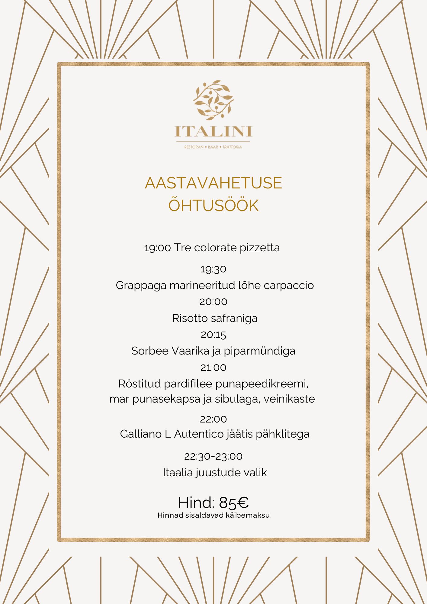 Ootame Teid tähistama aastavahetust meie elegantse Italini restorani hubases atmosfääris!